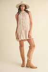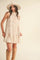 Bubble Hem Embellished Mixed Media Mini Dress - Creamy Blush