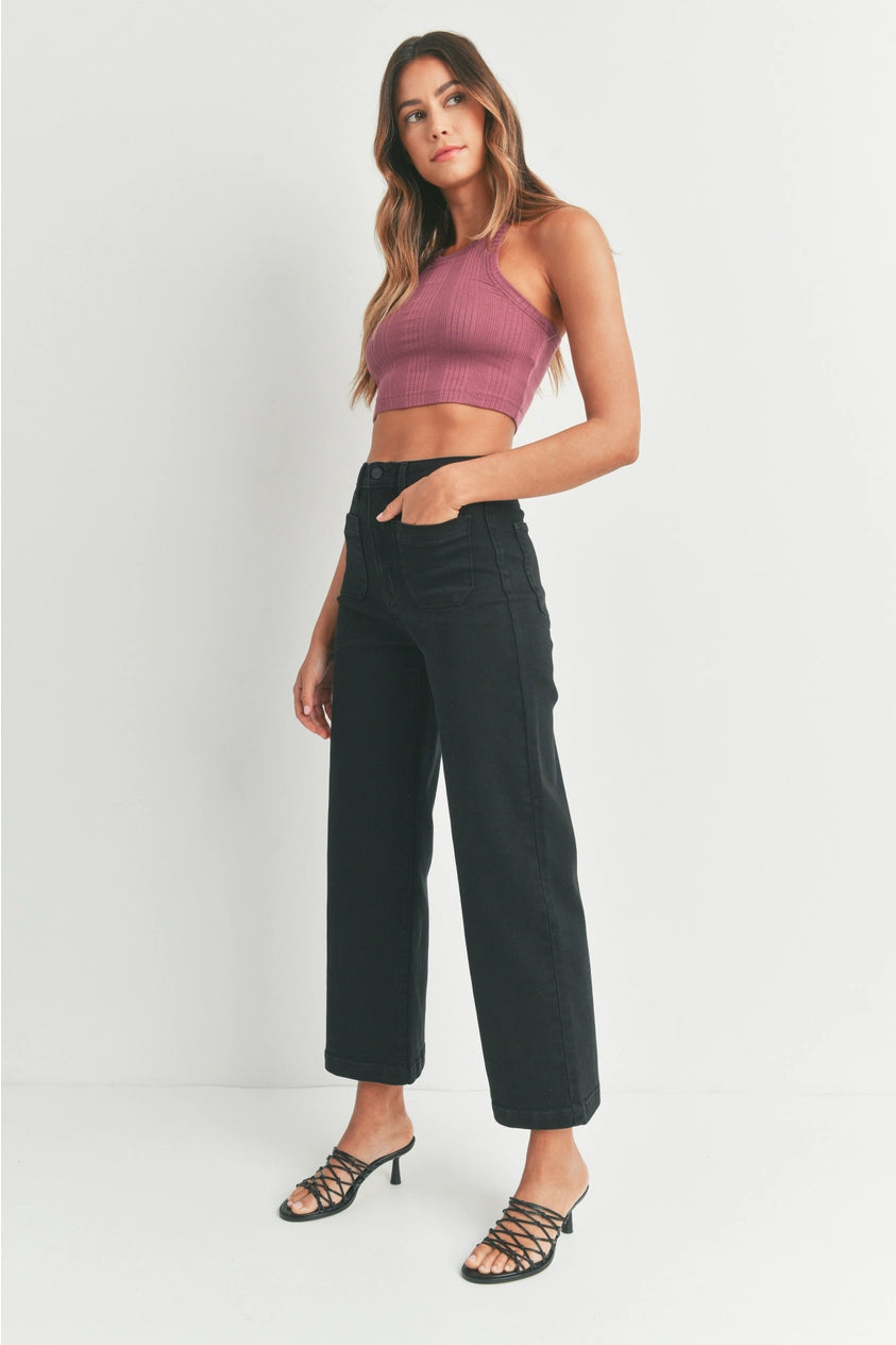 Just Black Denim PATCH POCKET WIDE LEG JEAN- Black
