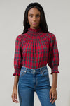 Jace Plaid Verity Smocked Top- Red