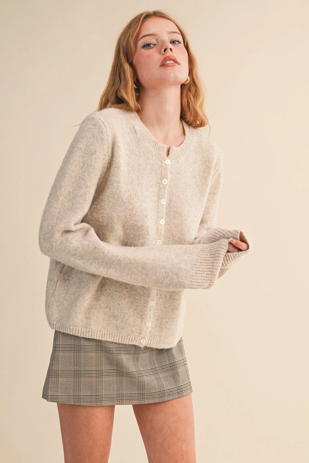 Leighton Marled Knit Sweater Cardigan - Navy or Ecru Oatmeal