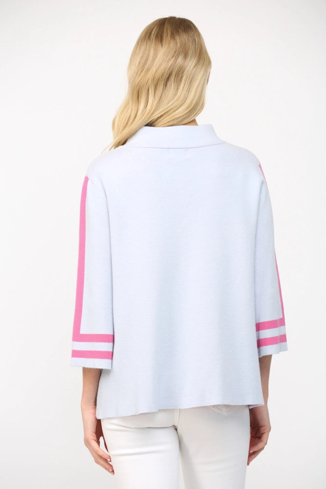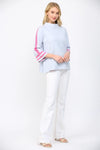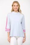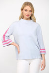 Audrey Striped Mock Neck Sweater - Powder Blue/Pink
