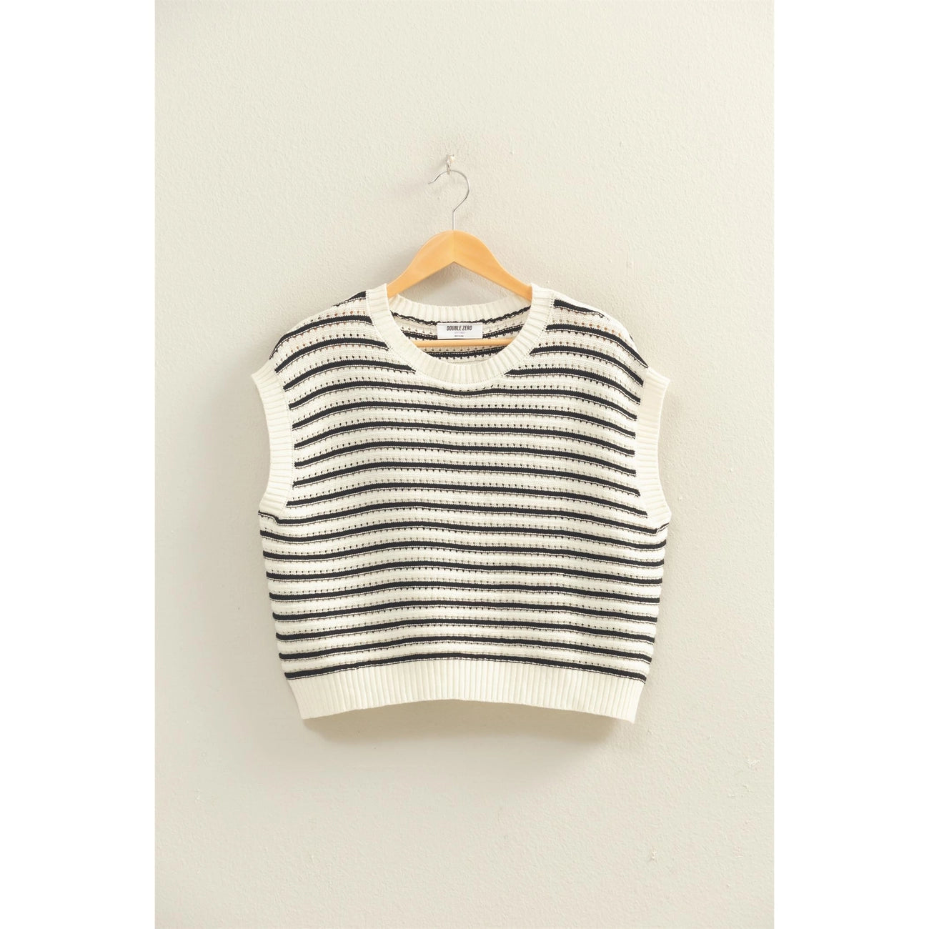 Black Striped Sleeveless Crew Neck Top