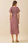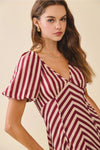 Chevron Striped Midi Dress- Burgundy