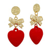 HAMMERED CIRCLE STUD WITH GOLD BOW AND RED HEART DROP EARRING