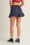 POLKA DOT PRINT NYLON FLARE SHORTS| Navy and Red