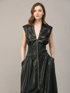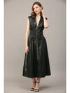 SMOCKED WAIST ZIP FRONT FAUX LEATHER MAXI DRESS BY FATE