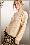 Soft Crew Neck Cable Knit Sweater- Soy Latte